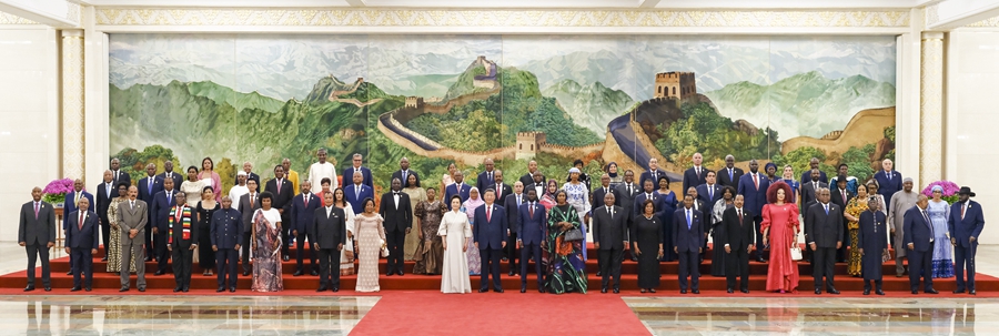 ??9月5日上午,國(guó)家主席習(xí)近平在北京人民大會(huì)堂出席中非合作論壇北京峰會(huì)開幕式并發(fā)表主旨講話。這是開幕式前,習(xí)近平同出席峰會(huì)的外方領(lǐng)導(dǎo)人集體合影。新華社記者 饒愛民 攝